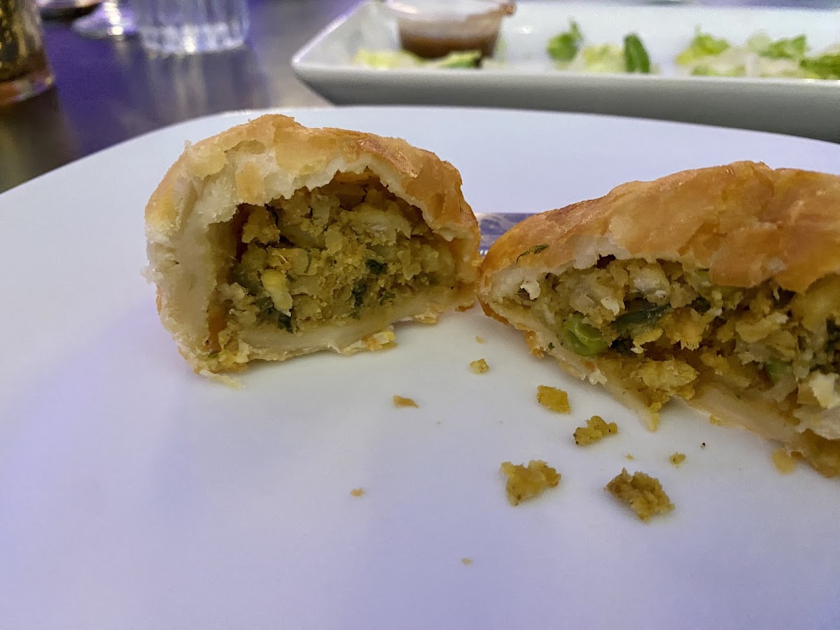 “ 3.5 stars rounded up. The food was okay, service was nice, venue quite empty, and location conveniently located a few minutes from Colma BART (which is largely why I picked it). A friend and I came by on a Wednesday evening to an empty dining room. The server was attentive and gave us lots of time and space to chat and catch up. We ordered: - Vegetarian samosas, two for $7: good, came with two dipping sauces - Paneer tikka masala, $16: a bit too sweet for me - Bengan bartha, $15: I’ve only ordered this dish once or twice before so am not a good judge, but I wasn’t a big fan of the dish - Garlic naan x2 ($4 each): these were thin and not that fluffy, which was a bummer Not bad, and the venue is spacious (though empty), but I wouldn’t go out of my way to return. ”